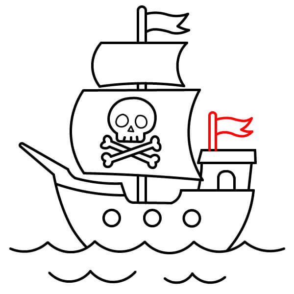 Na střechu kajuty nakreslete krátký stožárek s další malou vlajkou nebo praporkem. Tato vlajka by také měla vypadat, jako by vlála ve větru, podobně jako ta na hlavním stěžni.