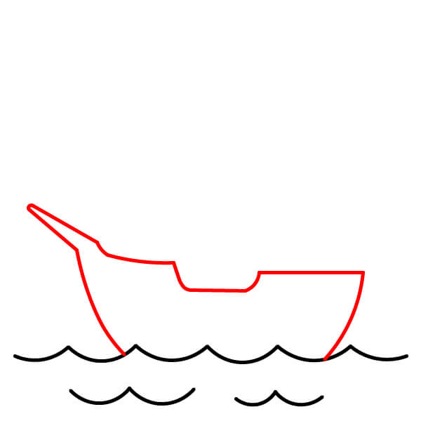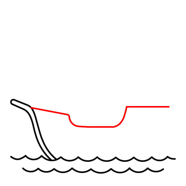 Nakreslete linii kýlu a zakřivenou konstrukci přídě (přední části lodi), přičemž se ujistěte, že sahá dolů do vody.