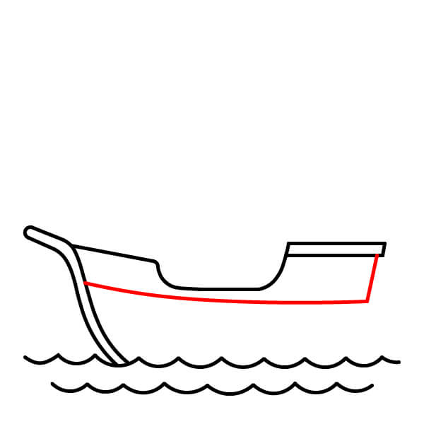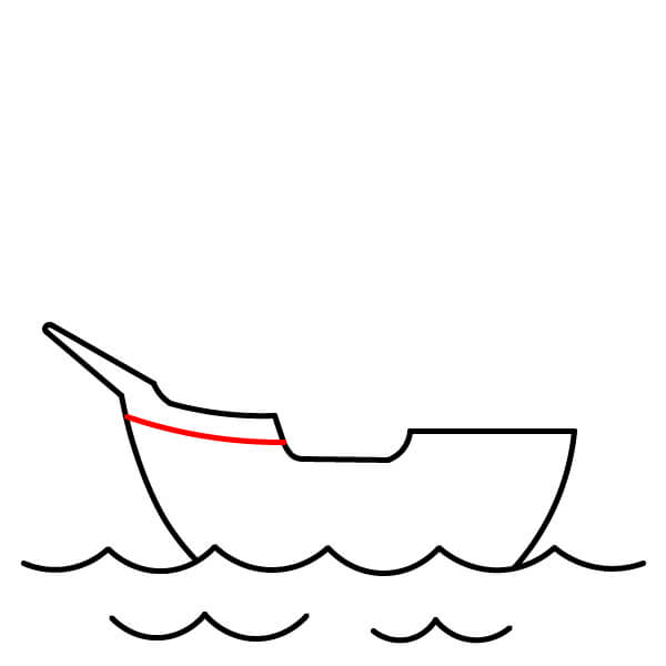 Nakreslete krátkou zakřivenou vodorovnou čáru poblíž přední části lodi (přídi), těsně pod horním okrajem trupu. Tento detail dodá lodi více struktury.