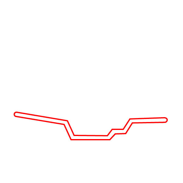 Nakreslete malý šikmý trojúhelníkový tvar vyčnívající ze zadní části paluby lodi. Tento prvek představuje kormidlový sloupek nebo ozdobný zadní díl.