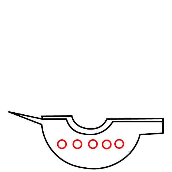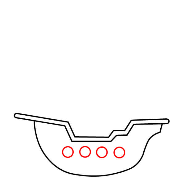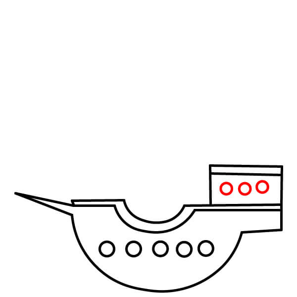 Nakreslete pět malých kruhů v řadě podél spodní zakřivené části trupu. Ty představují hlavní lodní okénka nebo otvory pro děla.