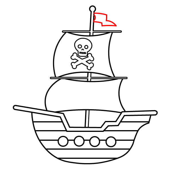 Na úplný vrchol stěžně nakreslete malý praporek nebo vlajku s rozděleným koncem, která vlaje na jednu stranu.
