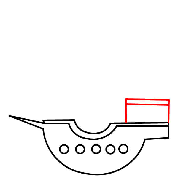 Na vyvýšené zádi lodi nakreslete obdélníkovou konstrukci. Ta představuje kajutu na zadní palubě nebo záďovou nástavbu.