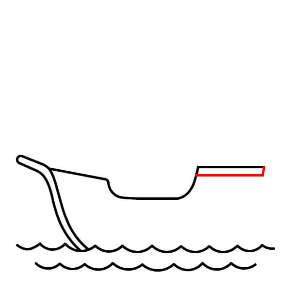 Přidejte krátkou vodorovnou čáru na vrcholu vyvýšené zadní části, která vyznačí zábradlí horní paluby.