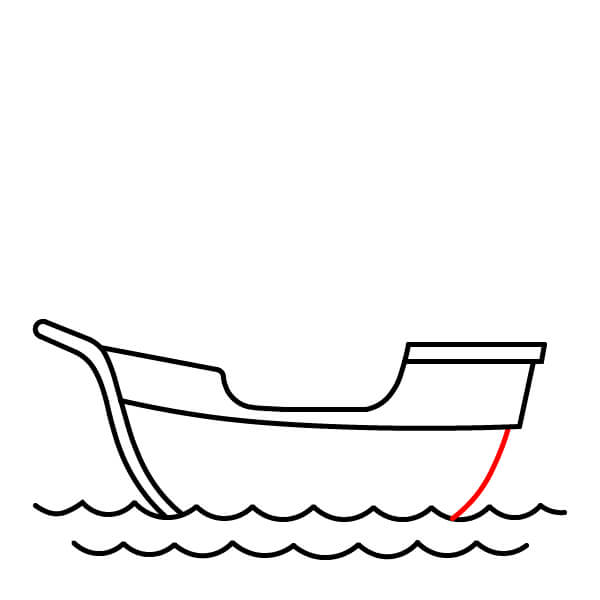 Nakreslete zakřivenou svislou čáru na zádi, která spojí zadní část trupu s vodou a dokončí hlavní tělo lodi.