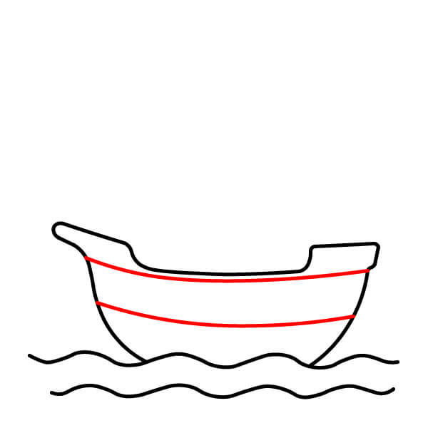 Přidejte dvě zakřivené vodorovné čáry přes spodní část trupu. Tyto čáry vytvářejí dojem dřevěného obložení na boku lodi.