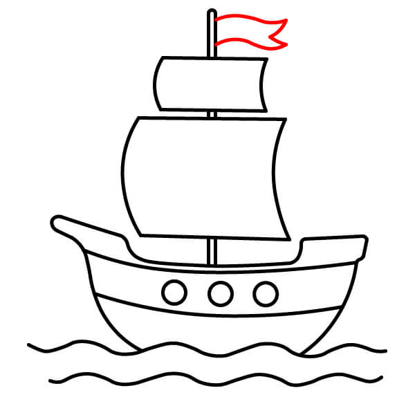 Na úplný vrchol stěžně nakreslete malý praporek nebo vlajku s rozděleným koncem.