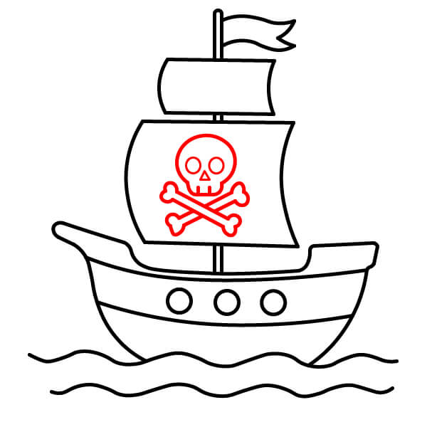 Na horní plachtu nakreslete symbol lebky a zkřížených kostí, známý jako Jolly Roger.