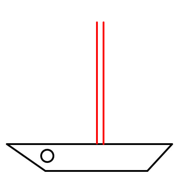Krok 3: Ze středu horní hrany lodi nakreslete svislou čáru směrem nahoru. To bude stěžeň.