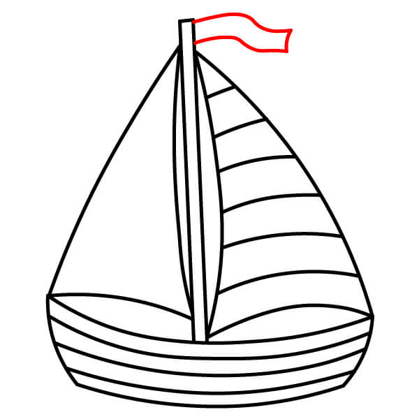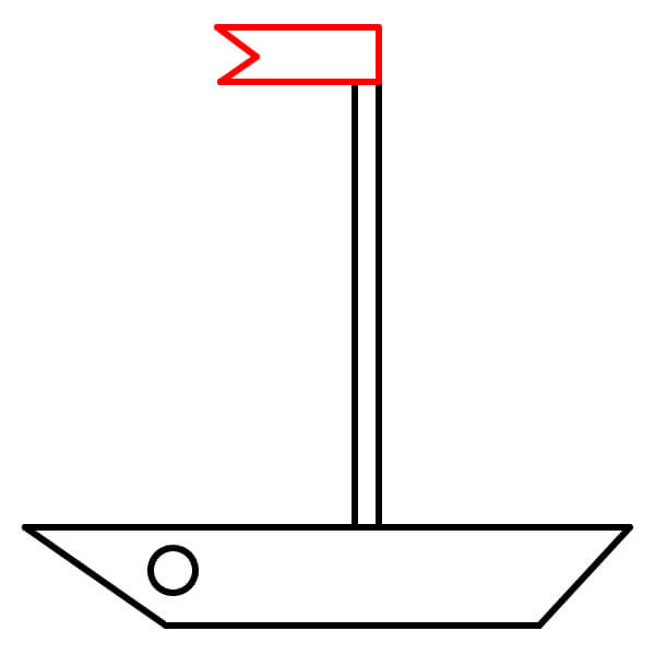 Krok 7: Na vrcholu stěžně nakreslete vlajku ve tvaru vlnky, která směřuje na jednu stranu.