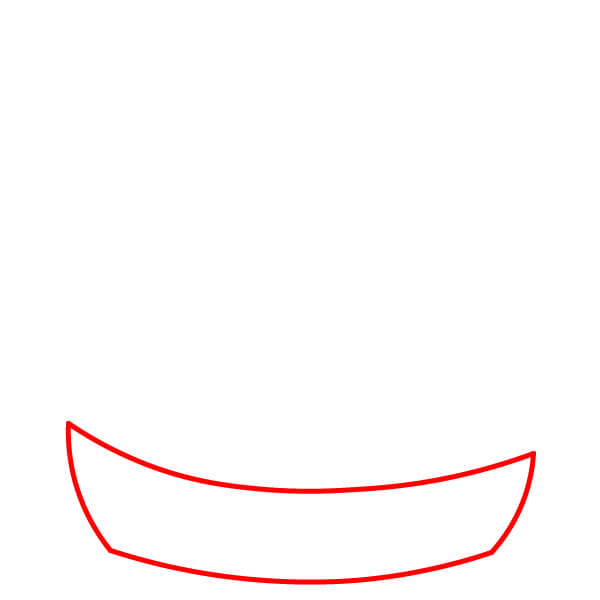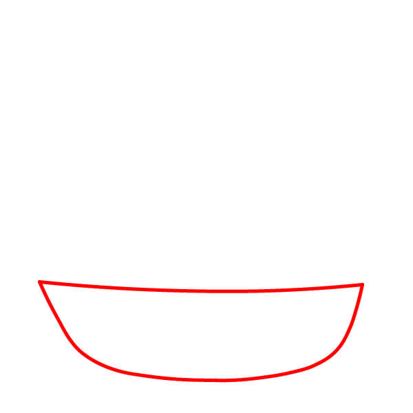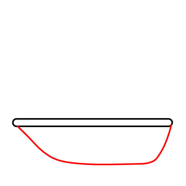 Krok 2: Nad základnou nakreslete další o něco delší vodorovnou čáru, také se zaoblenými konci, která vytvoří horní okraj lodi. Konce této čáry spojte s konci základny zakřivenými čarami, čímž vytvoříte tvar trupu lodi.