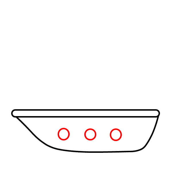 Krok 3: Na bok lodi nakreslete tři malé kruhy v rovnoměrných rozestupech jako kulatá okénka.