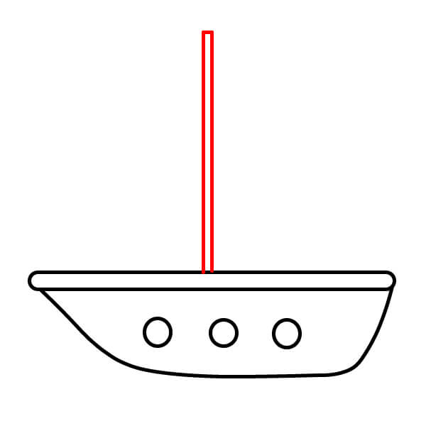 Krok 3: Ze středu horní části lodi nakreslete svislou čáru směrem nahoru. To bude stěžeň.