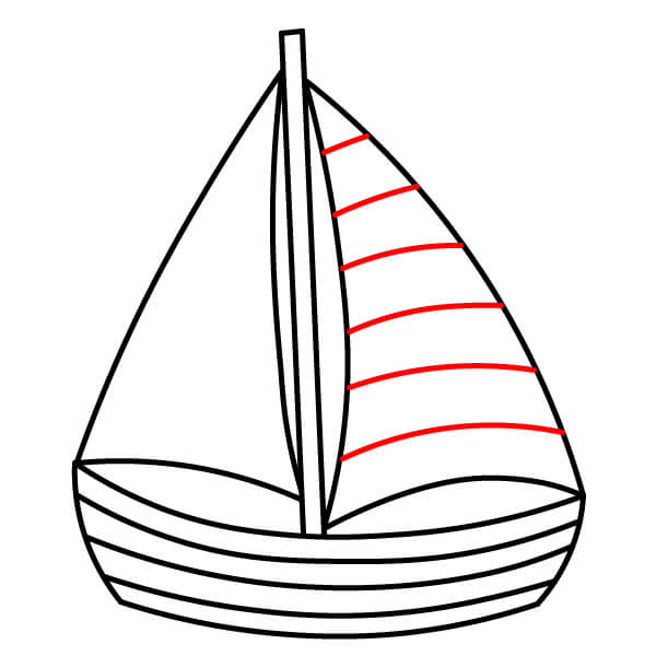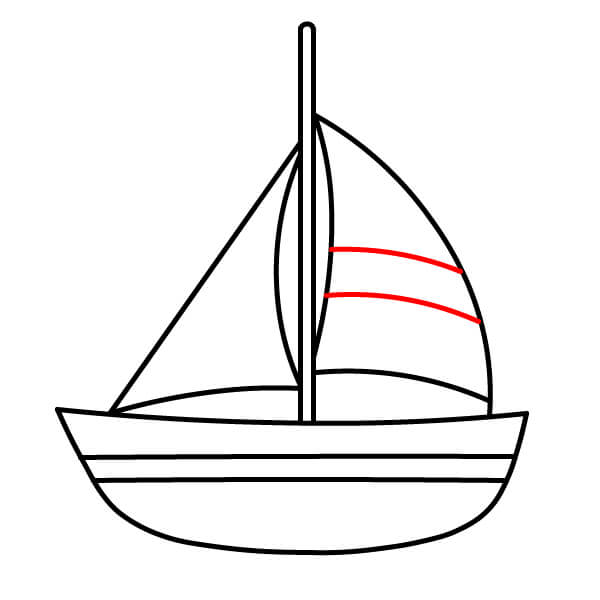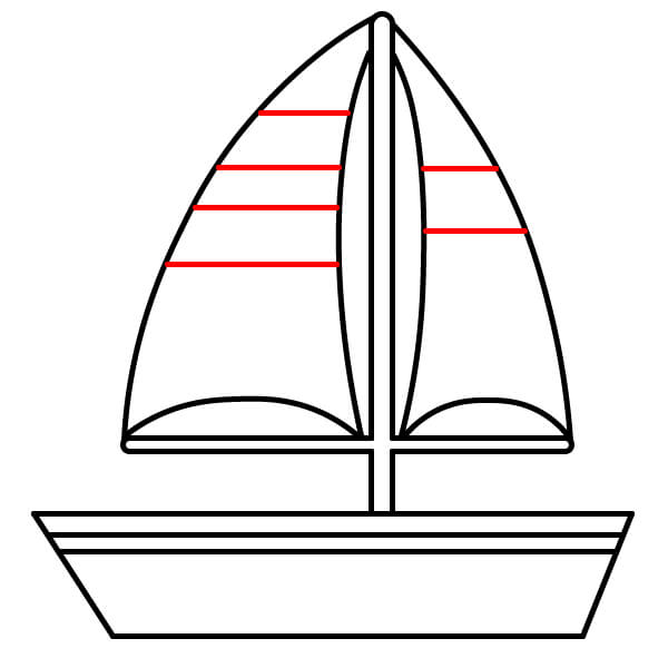 Krok 6: Přidejte dvě vodorovné čáry přes zadní plachtu, čímž vytvoříte pruhy.
