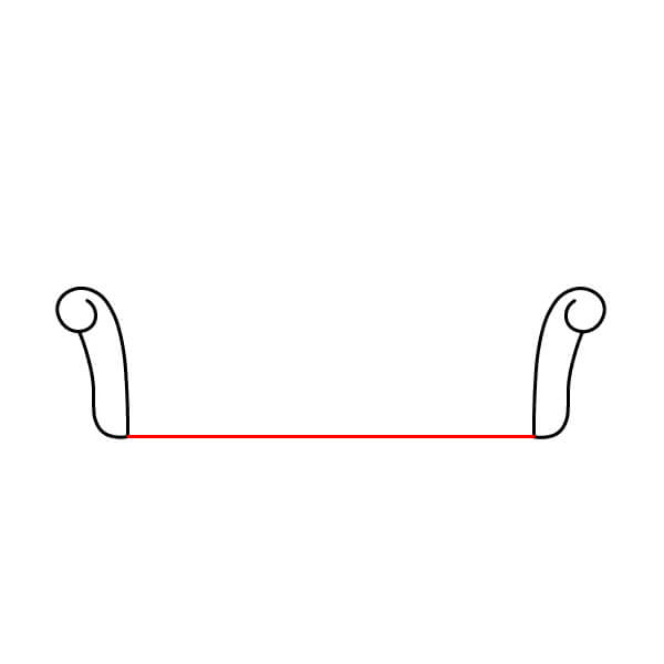 Krok 2: Spojte dvě područky dvojicí vodorovných čar a vytvořte tak základnu pohovky.