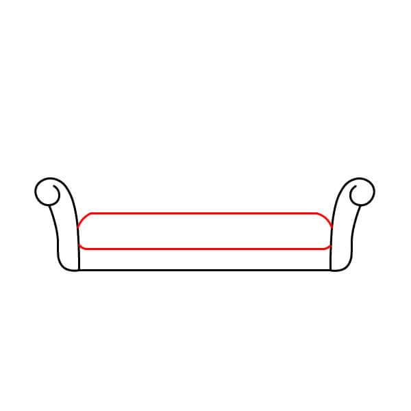 Krok 2: Spojte dvě područky dvojicí vodorovných čar a vytvořte základnu pohovky.