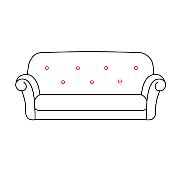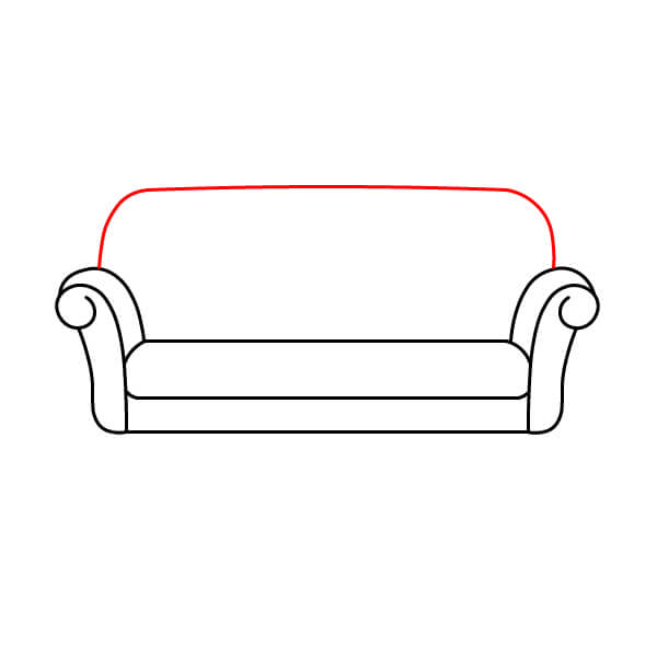 Krok 6: Přidejte dvě malé křivky, které spojí opěradlové polštáře s područkami a představují horní část opěradla pohovky.