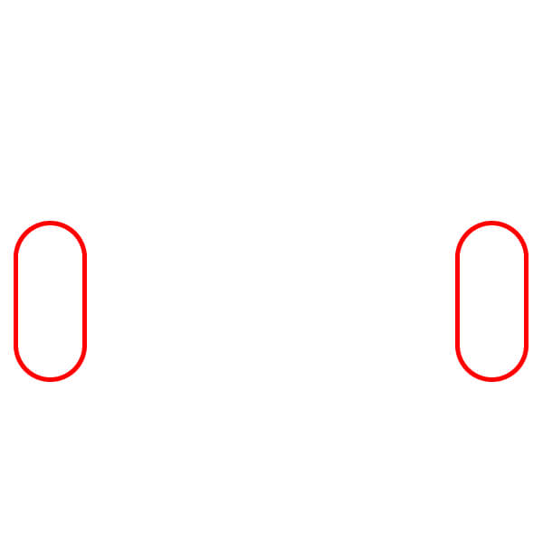 Krok 1: Nakreslete dva svislé obdélníky se zaoblenými konci. To budou područky.