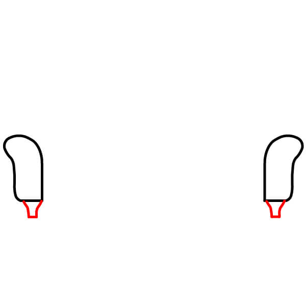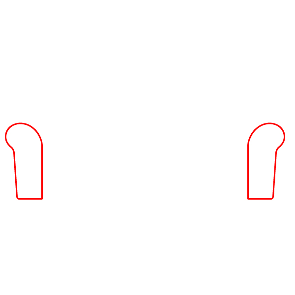 Krok 1: Začněte nakreslením dvou nepravidelných, mírně zakřivených svislých tvarů se zaoblenými horními a plochými spodními stranami. Toto jsou područky.