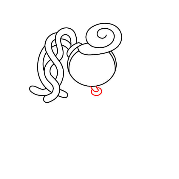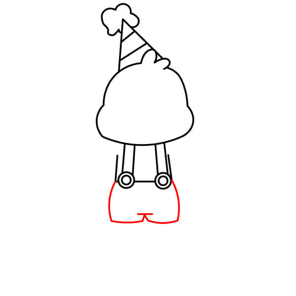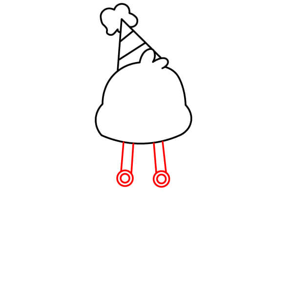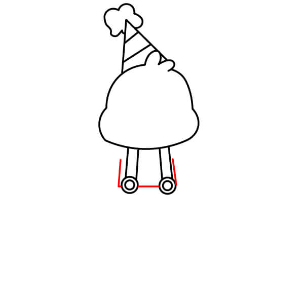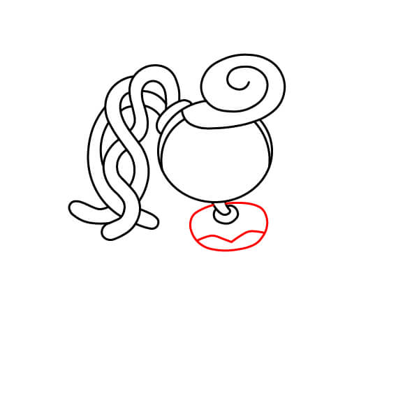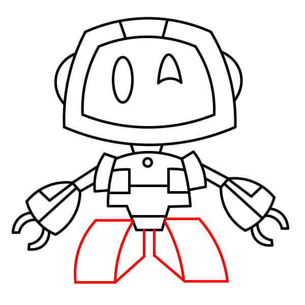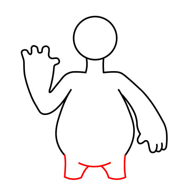 Na spodní části trupu nakreslete dvě krátké a široké nohy. Uprostřed mezi nimi vytvořte malý obloukový zářez.