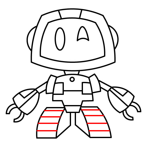 Na každé noze nakreslete tři vodorovné čáry přes širší část nohy, které vytvoří vzor pásů podobných tankovým pásům.