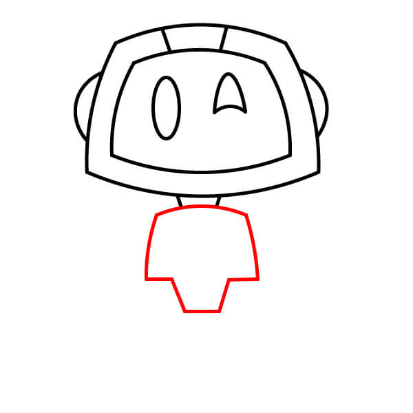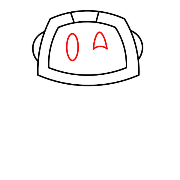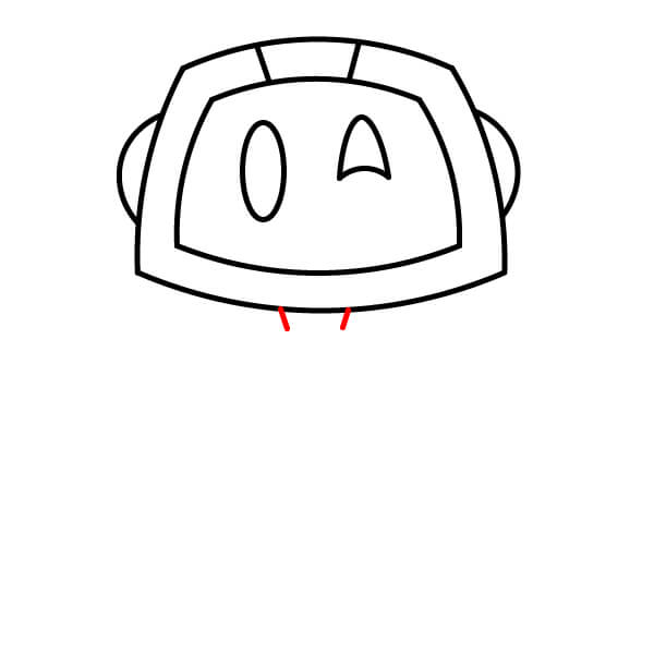 Na horní střed hlavy nakreslete dvě malé zakřivené čáry spojující vnitřní a vnější rám. Na bocích hlavy přidejte dva malé zakřivené tvary jako uši nebo reproduktory.