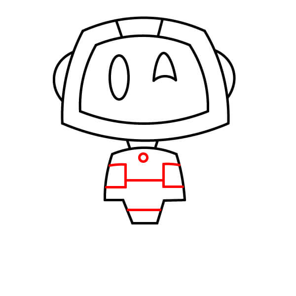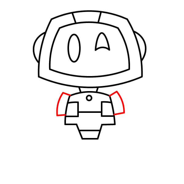Na obou stranách horní části trupu nakreslete dva malé zaoblené geometrické tvary jako ramenní klouby, kam se připojí paže.