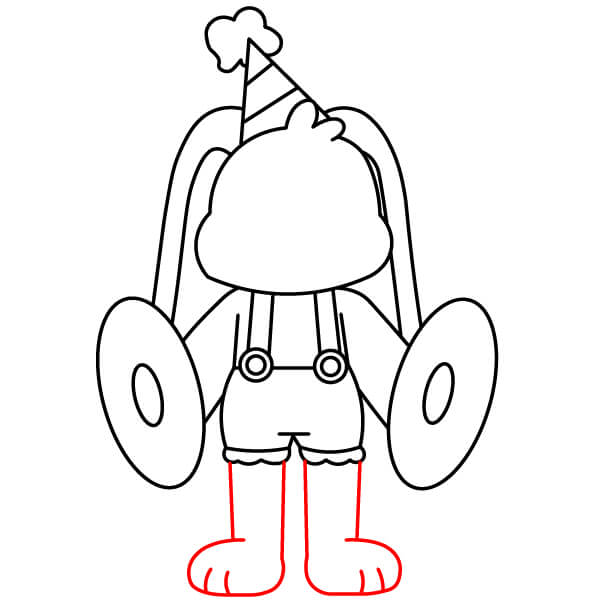 Dokončete nohy přidáním zaoblené spodní části chodidel. Na přední části každé nohy nakreslete dvě nebo tři malé čáry pro prsty.
