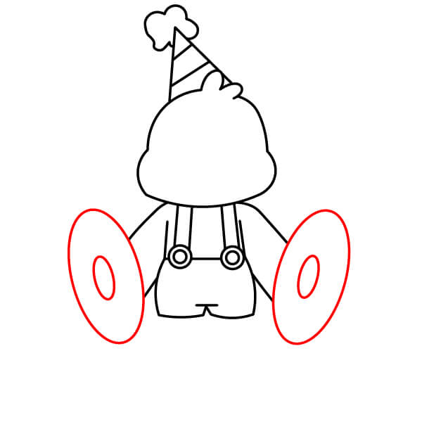 Na obou stranách těla nakreslete dva velké oválné tvary jako činely. Uvnitř každého velkého oválu nakreslete o něco menší ovál, který představuje střední držadlo nebo otvor.