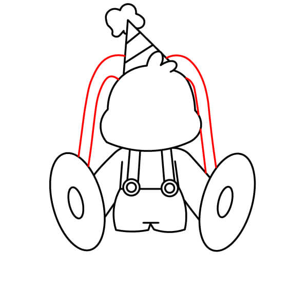 Nakreslete dvě dlouhé zakřivené čáry, které se táhnou vysoko nad hlavu a dolů po stranách. Ty vytvoří dlouhé, svěšené králičí uši.