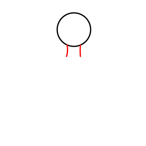 Nakreslete dvě krátké rovné svislé čáry směřující dolů ze spodní části kruhu, které vytvoří krk.