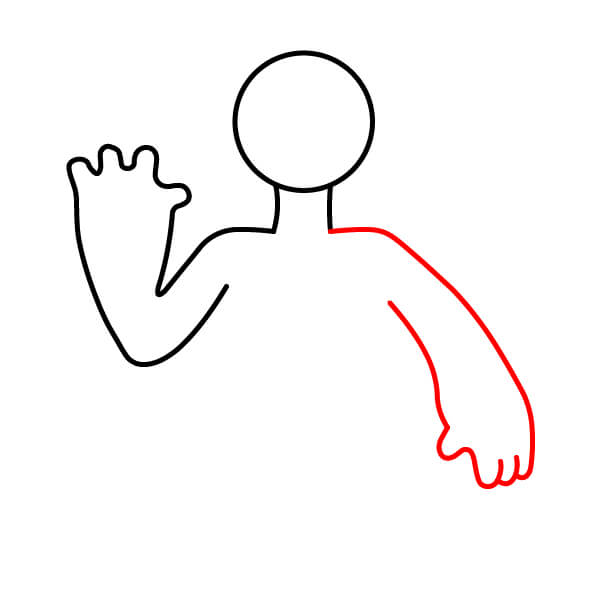 Nakreslete pravou ruku (na levé straně obrázku), která směřuje ven a dolů. Ruka by měla být silnější a na konci mít dlaň s podobně vlnitými prsty.