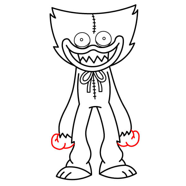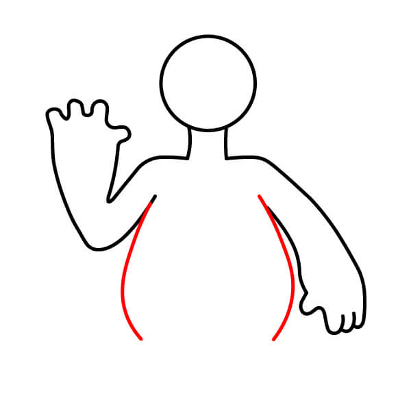 Na konci paží nakreslete zaoblené dlaně podobné pěstím. Měly by odpovídat chlupatému stylu postavy.