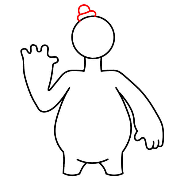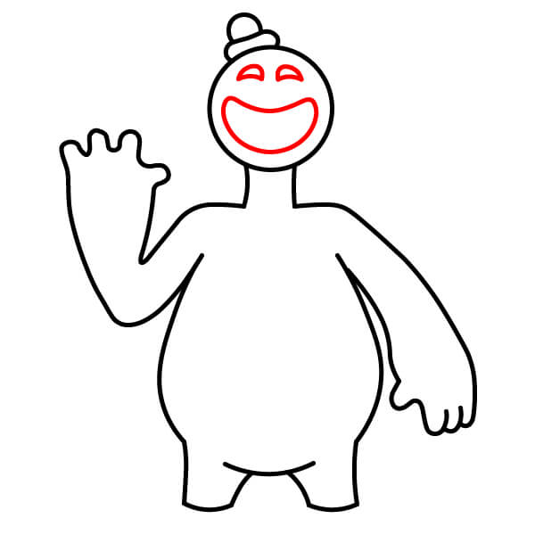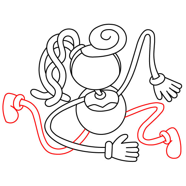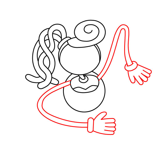 Nakreslete levou ruku (na pravé straně obrázku), která směřuje ven a je ohnutá nahoru. Na konci přidejte ruku se čtyřmi malými vlnitými výběžky jako prsty, aby připomínaly měkkou „těstovou“ strukturu. Ruka by měla vypadat, jako by mávala.