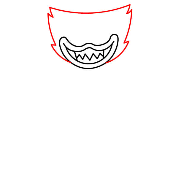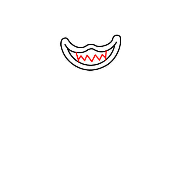 Uvnitř úst podél spodní křivky nakreslete řadu ostrých klikatých čar, které vytvoří děsivé zuby.