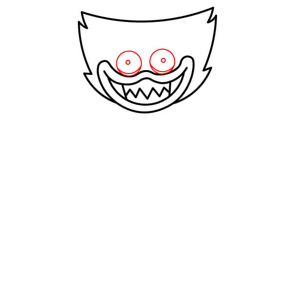 Nad ústy nakreslete dva velké kruhy pro oči. Do každého přidejte menší kruh jako zornici.