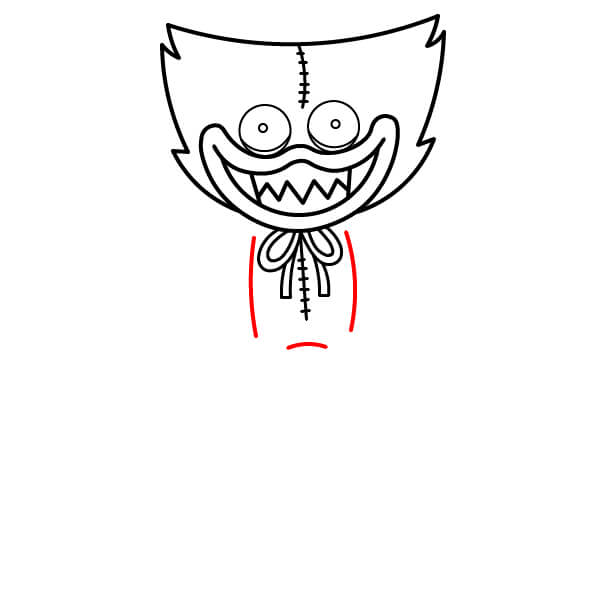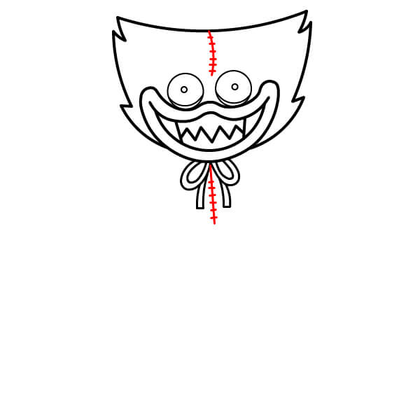Nakreslete svislou čáru uprostřed hlavy, která vede od vrcholu hlavy k motýlku. Přidejte malé krátké čárky po stranách této čáry, které znázorňují šití nebo stehy. Podobnou krátkou svislou čáru se stehy nakreslete také doprostřed motýlku.