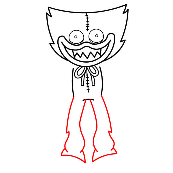 Ze spodní části trupu nakreslete dlouhé, mírně vlnité obrysy nohou. Nohy by měly být dole širší u chodidel. Čáry se dole rozdělí a vytvoří dvě nohy.