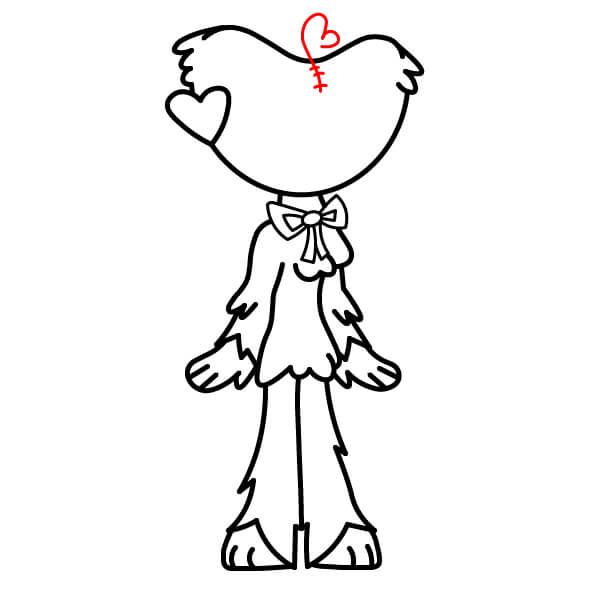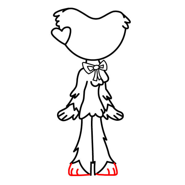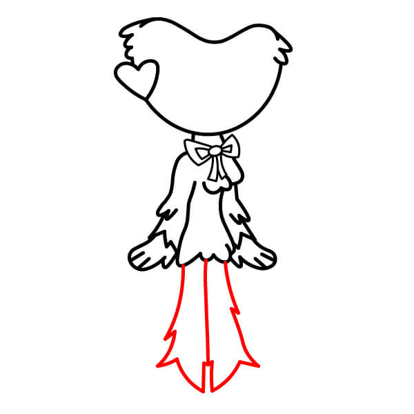 Nakreslete dvě dlouhé rovné nohy vycházející z dolní části trupu. Spodní okraj srsti nad nohama by měl být roztřepený nebo špičatý.