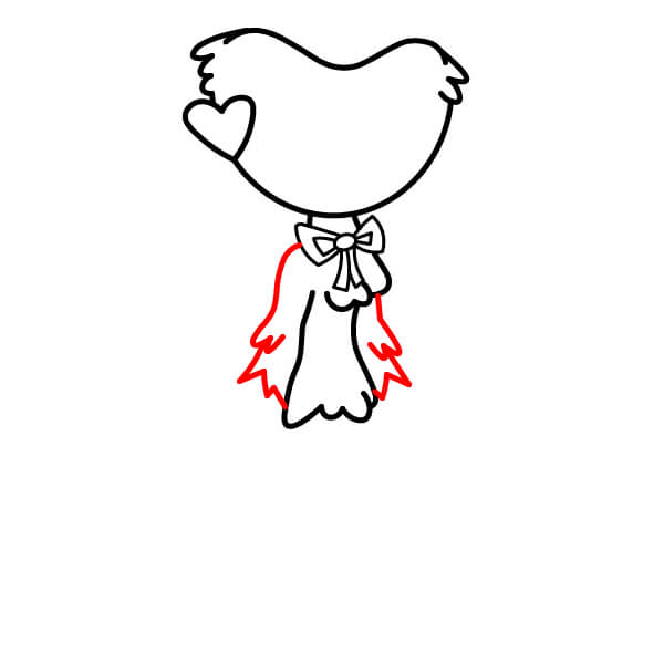 Nakreslete vlnitý tvar podobný zvonu, který vytvoří horní část těla a spojí čáry z kroku 4. Tato část je pokrytá srstí.