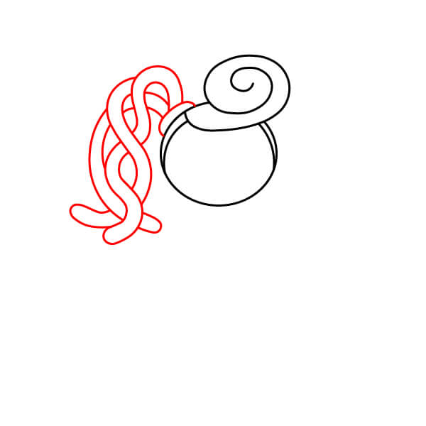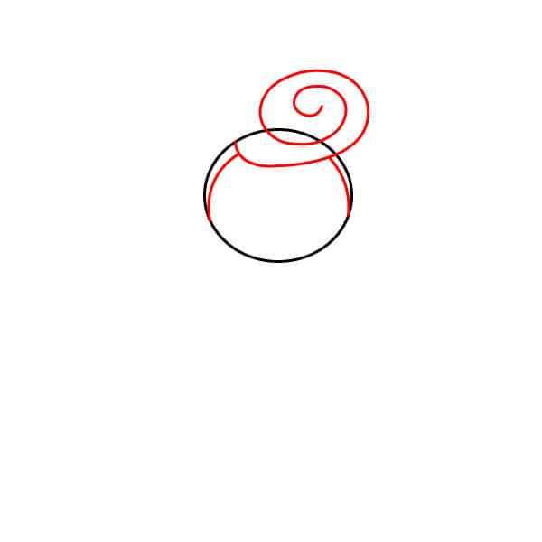 Nakreslete zakřivenou čáru přes horní část kruhu jako linii vlasů a přidejte velký vír na pravé horní straně pro její zatočený drdol nebo culík.