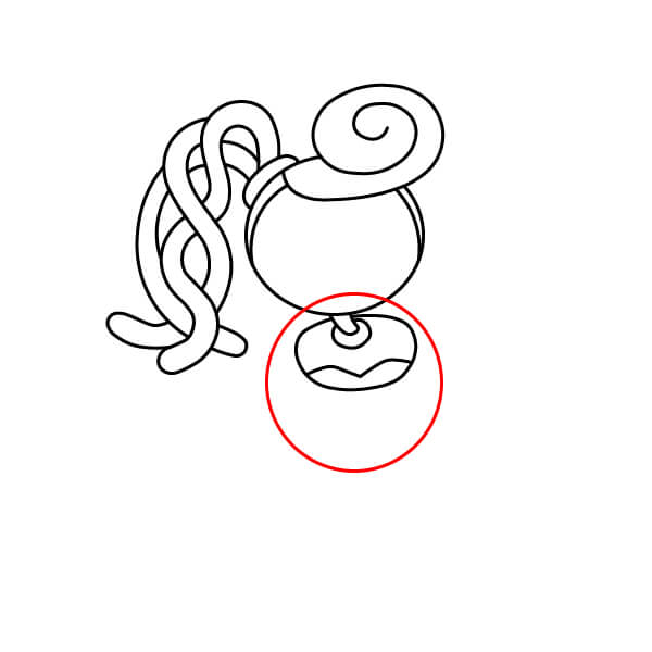 Pod hlavou nakreslete malý oválný tvar s vlnitou čarou uvnitř, který se napojuje na krk. Ten představuje volánový límec kolem krku.