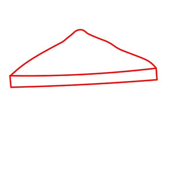 Krok 1: Začněte nakreslením obrysu horního krajíce chleba. Je to trojúhelník s plochým dnem a mírnou tloušťkou viditelnou na boku.
