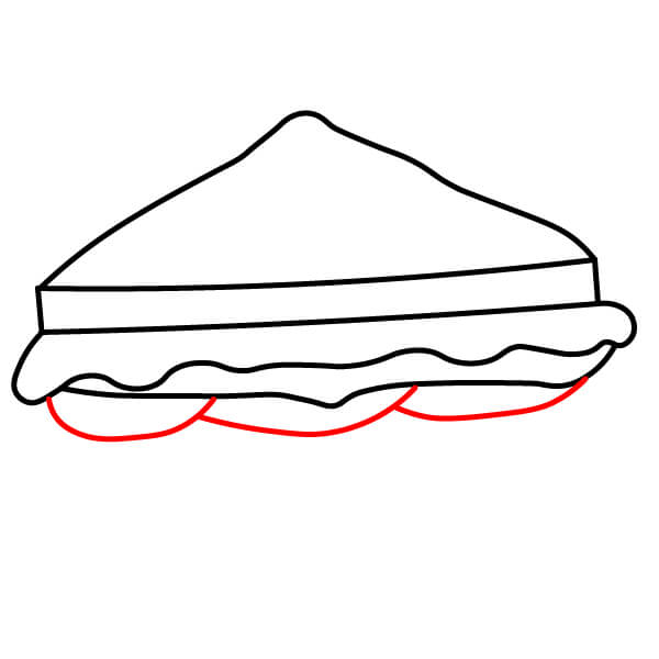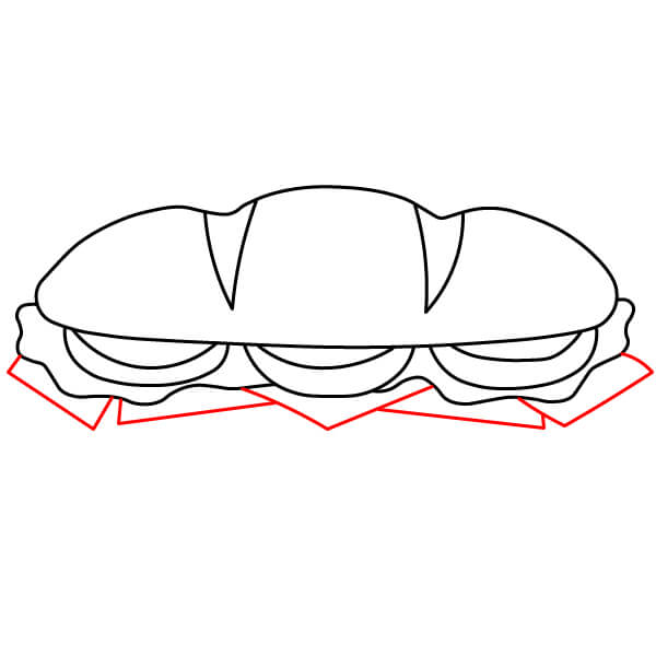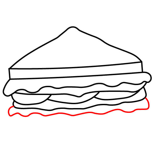 Krok 6: Dokončete obrys sendviče nakreslením spodní housky, která ji spojí s náplněmi.