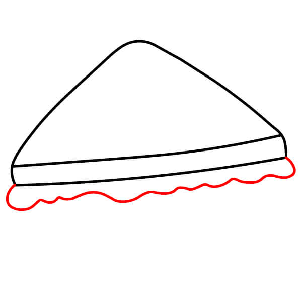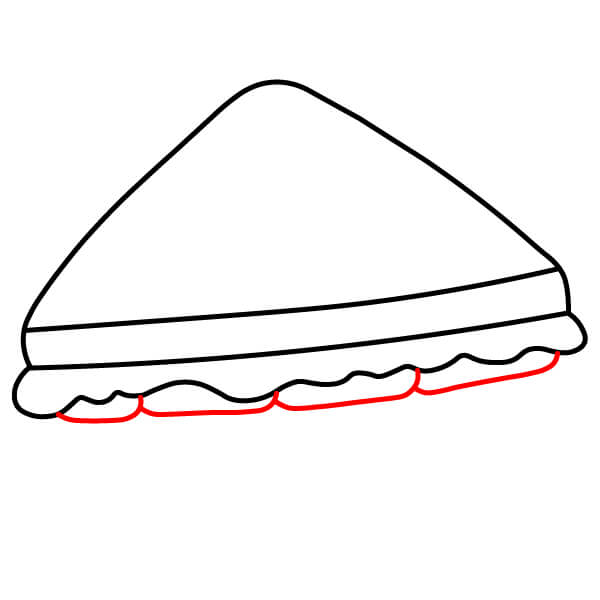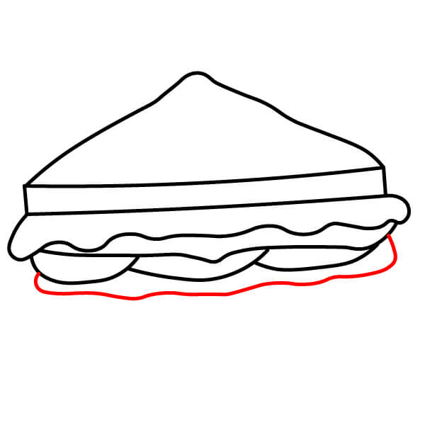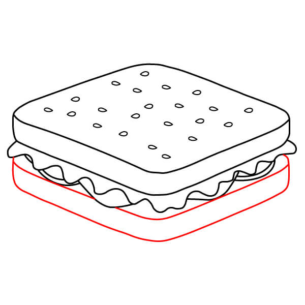 Krok 7: Nakreslete rovnou čáru pro spodní okraj celého sendviče, čímž vytvoříte základnu spodního krajíce chleba.