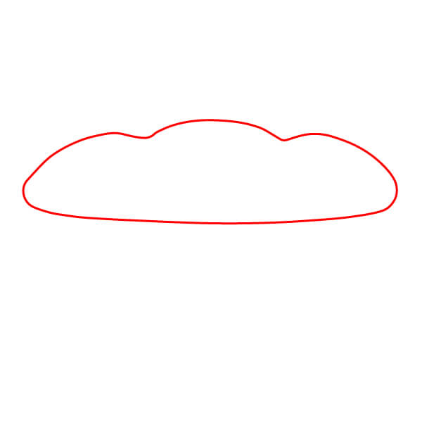 Krok 1: Nakreslete obrys horní housky. Měl by mít mírně protáhlý oválný tvar s několika křivkami nahoře.