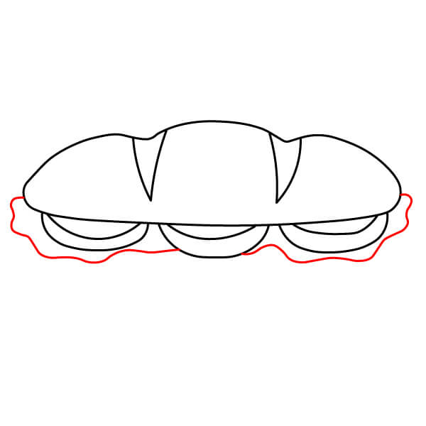 Krok 3: Pod vlnovku přidejte několik zakřivených čar, které představují plátky rajčat a maso.