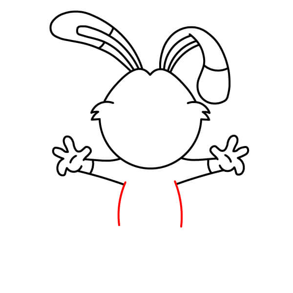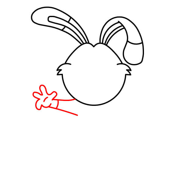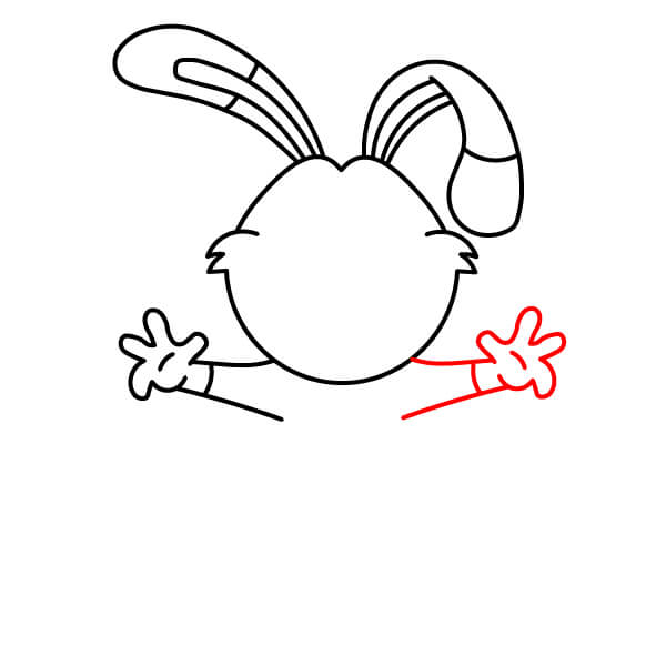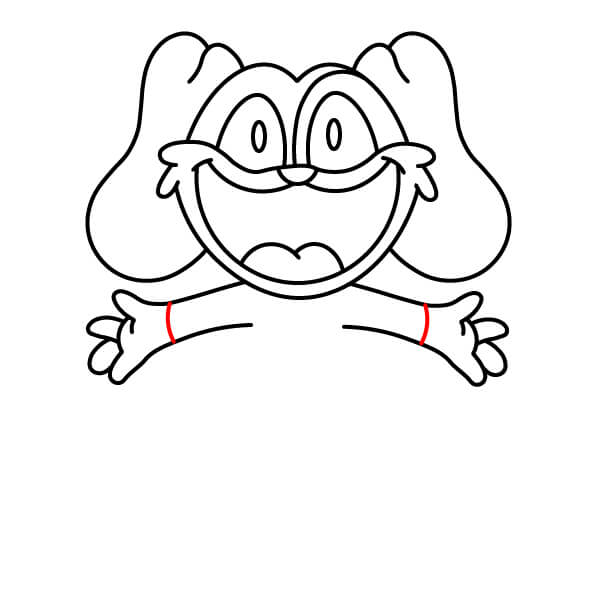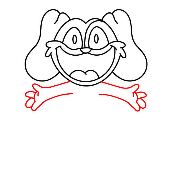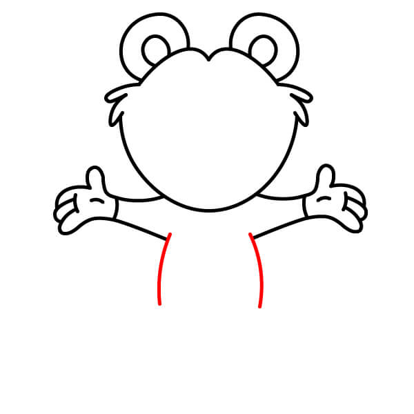 Přidejte paže. Z oblasti spodní části hlavy/krku nakreslete dva silnější, zakřivené tvary. Budou to jeho jednoduché, zvednuté paže.