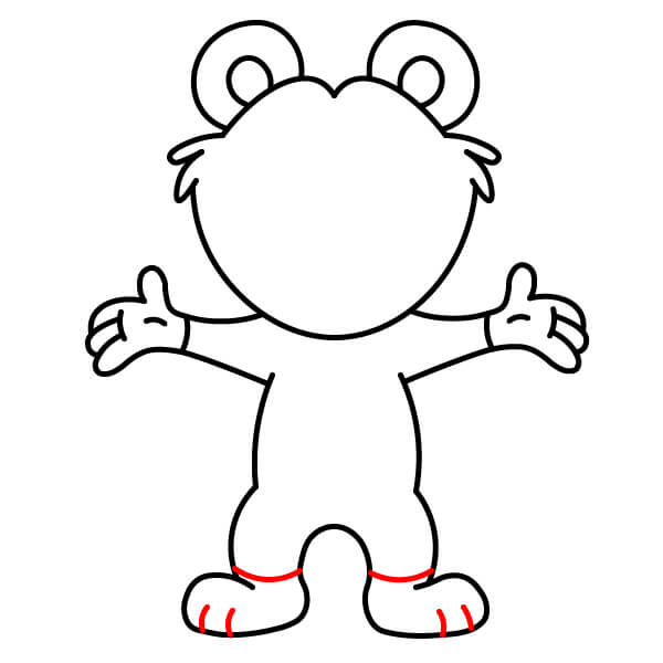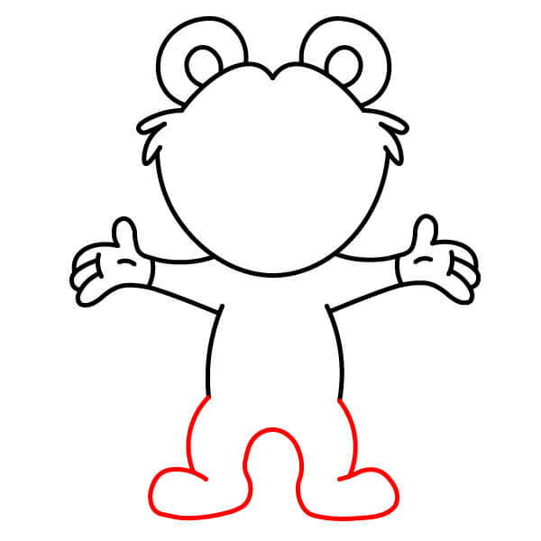 Nakreslete spodní část nohou a chodidla. Z těla dolů nakreslete dvě jednoduché, silnější nohy a na spodní část každé přidejte zakřivenou čáru pro chodidla.