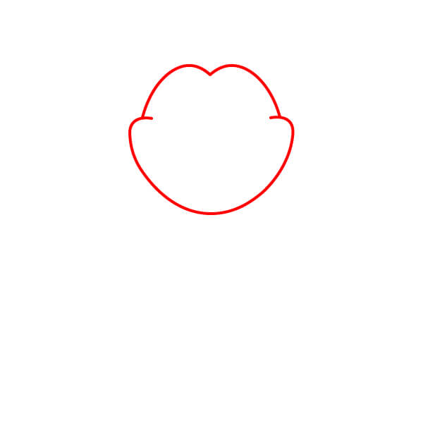 Začněte nakreslením základního obrysu hlavy. Měla by mít velký, mírně zaoblený tvar s výraznou křivkou ve tvaru „W“ nebo srdce nahoře, která naznačuje linii obočí/čela.